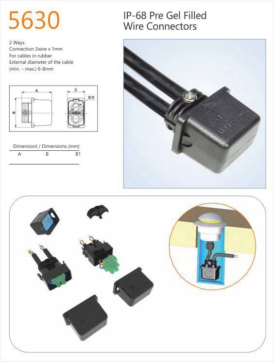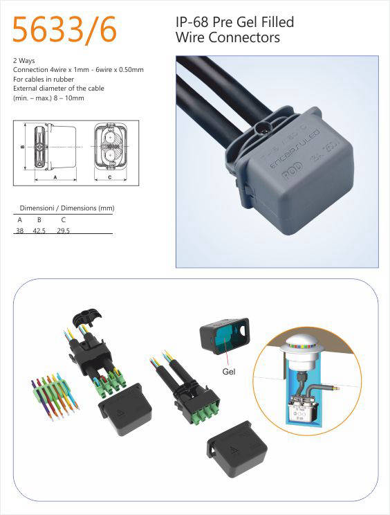The GEL will cover cables, the conductors and the electrical connection ensuring electrical insulation and preventing dust and moisture infiltration, between the external surface of cables and the external part of the connector; between the inner insulating layers and the individual conductors. This is a unique feature in the IP68 waterproof connectors. The other products available in the existing market protects only the external insulation of the cable.